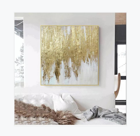 Высококачественная Вертикальная 100% ручная роспись абстрактный стиль золотая текстурированная масляная живопись настенное искусство